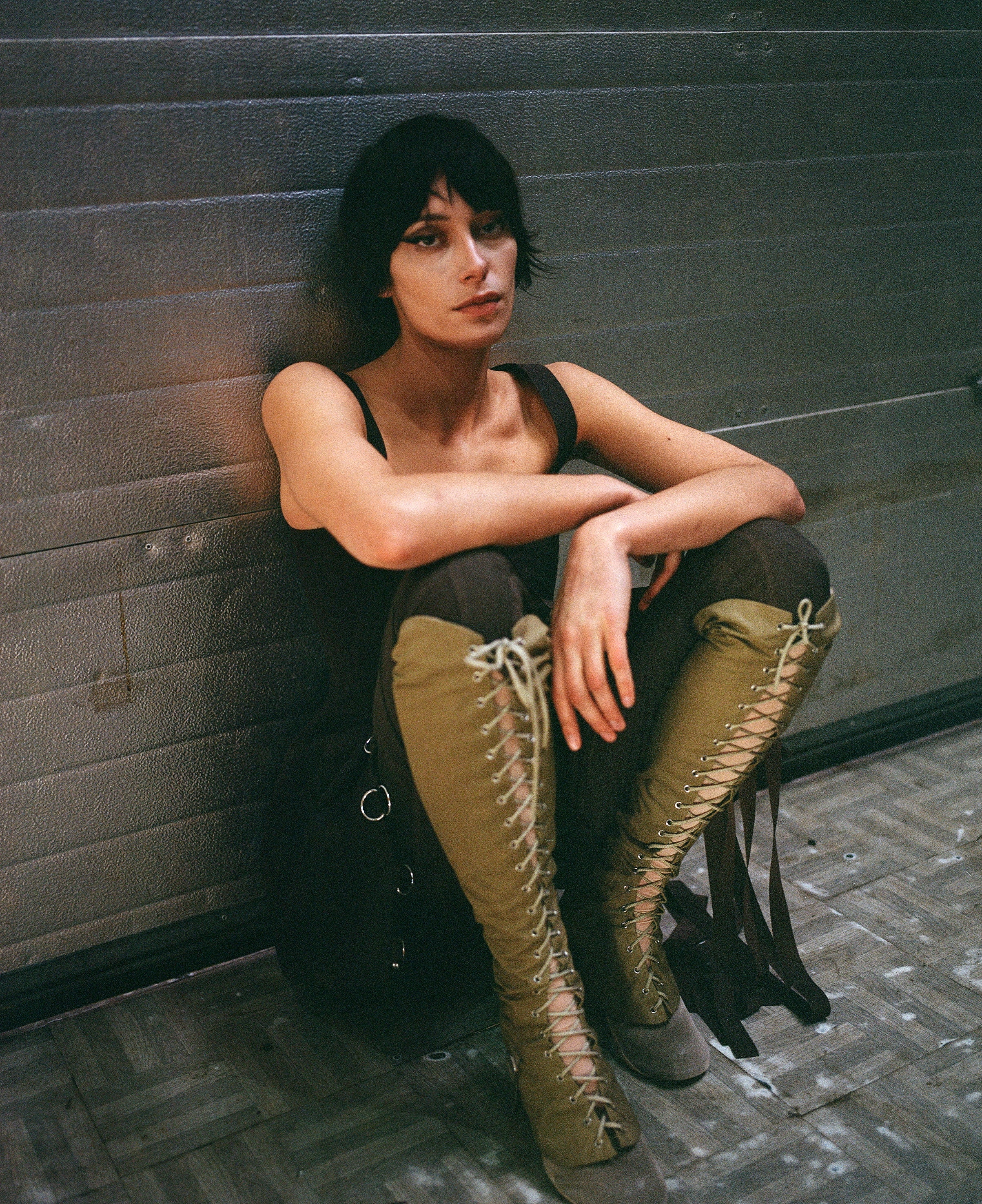 The Wax Cotton Laced Gaiter is handcrafted in France using luxurious lambskin sourced from deadstock materials of renowned fashion houses. Made through traditional artisanal leatherworking techniques, it draws inspiration from a fusion of corsetry and high-mountaineering gaiters. The design features a silver metal zipper at the back for both aesthetic appeal and easy fastening.